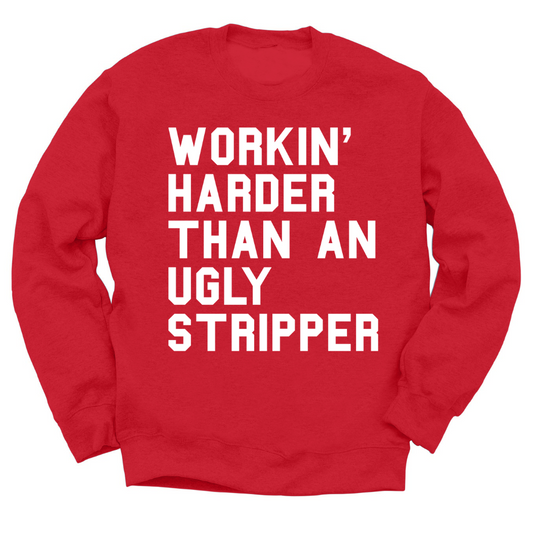 Workin' Harder Than An Ugly Stripper Crewneck Sweater