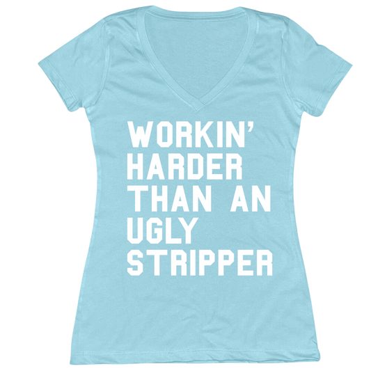 Workin' Harder Than An Ugly Stripper Ladies V-Neck Tee