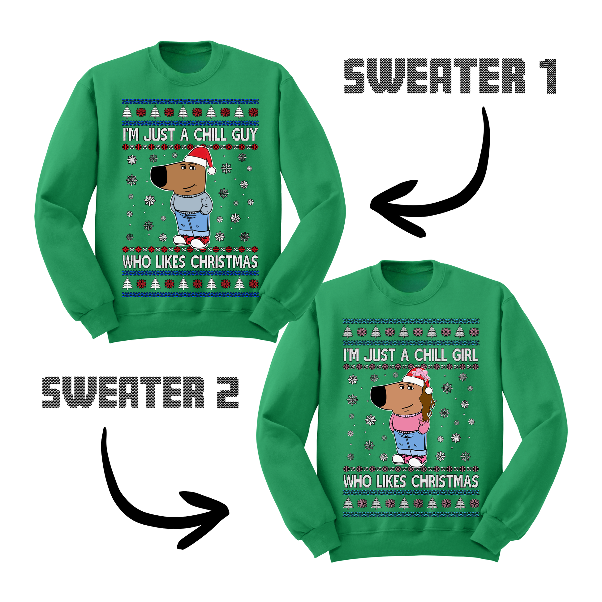 Ugly Christmas Sweater Chill Guy Chill Girl Matching Sweatshirts